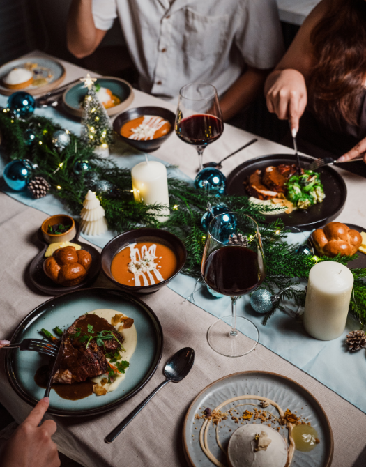 Spend a magical Christmas Eve or Christmas Day at Sol & Ora with a refined 4-course Mediterranean dinner. Enjoy a festive evening of elegant flavours, live carving stations, and panoramic sea views — a warm and joyous celebration to mark the most wonderful time of the year.